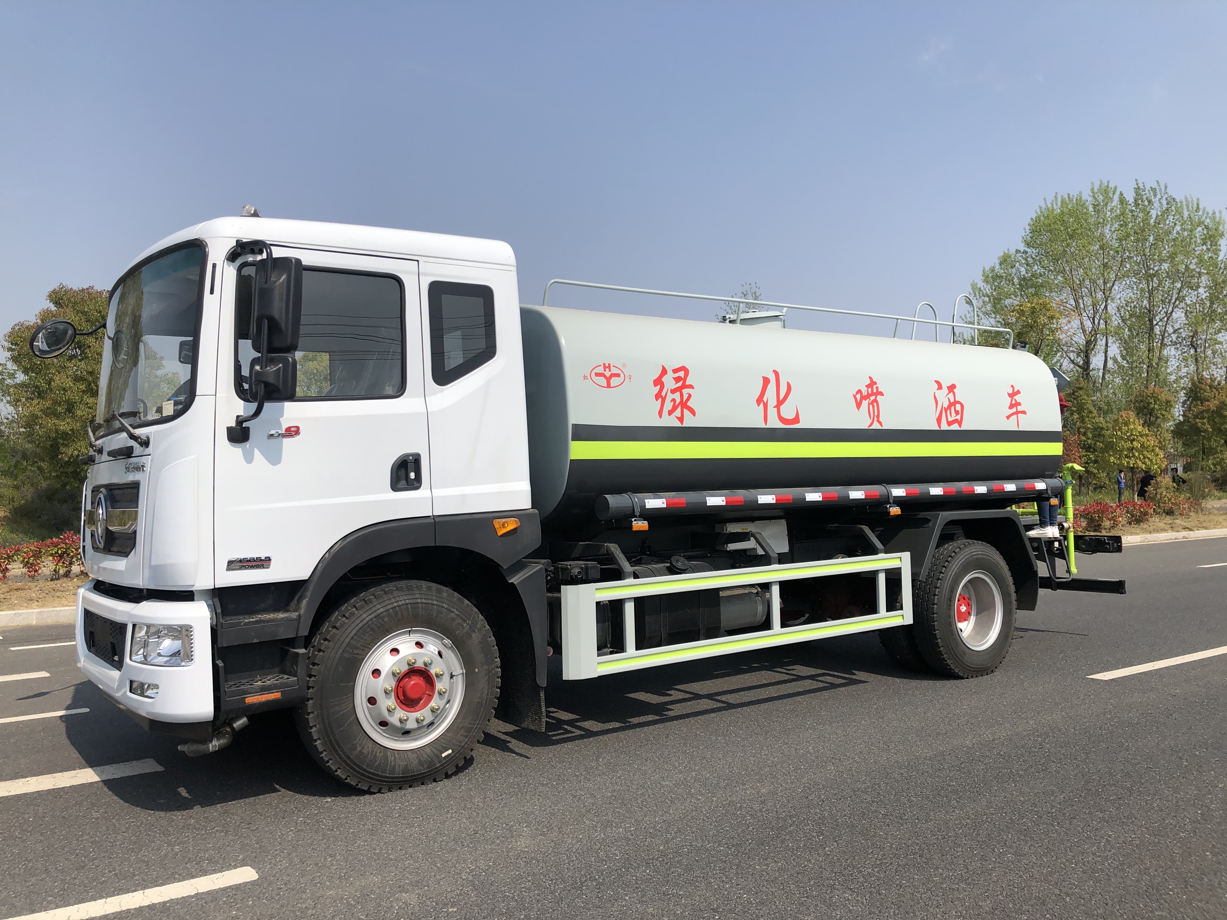 這款性價比超高的12噸灑水車采用東風多利卡D9駕駛室底盤,外寬2315mm,排半,玉柴165馬力(YCY30165-60)國六發動機,121KW,法士特8檔變速箱,9.00R20鋼絲胎,3.9/8噸德納前/后橋,250mm寬大梁,帶原廠空調、電動窗、ABS,行駛記錄儀。24V雙電瓶,斷氣剎,動轉,排氣制動。