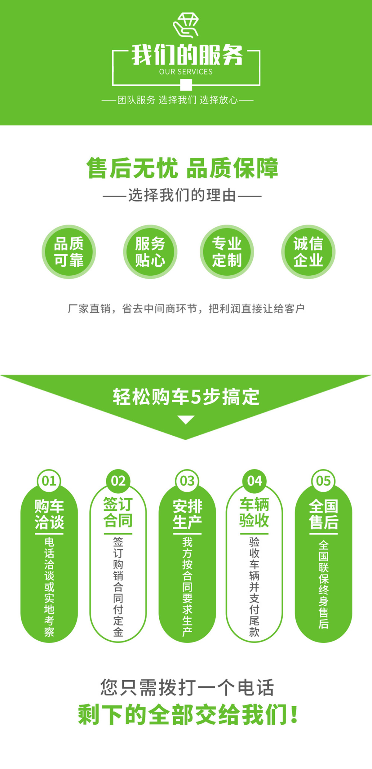 感謝您使用我公司生產(chǎn)的“神綠牌”各型專用汽車,為了更好的提供優(yōu)質(zhì)的售后服務(wù),我公司現(xiàn)鄭重向您作出如下承諾: